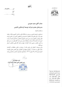 این تقدیرنامه از سوی دکتر فرید جواهرزاده، رئیس انجمن علمی طبیعتگردی ایران، و به پاس حمایت مؤثر، تلاش صادقانه و همراهی علمی شرکت کادوس در برگزاری این رویداد ملی اهدا گردید.